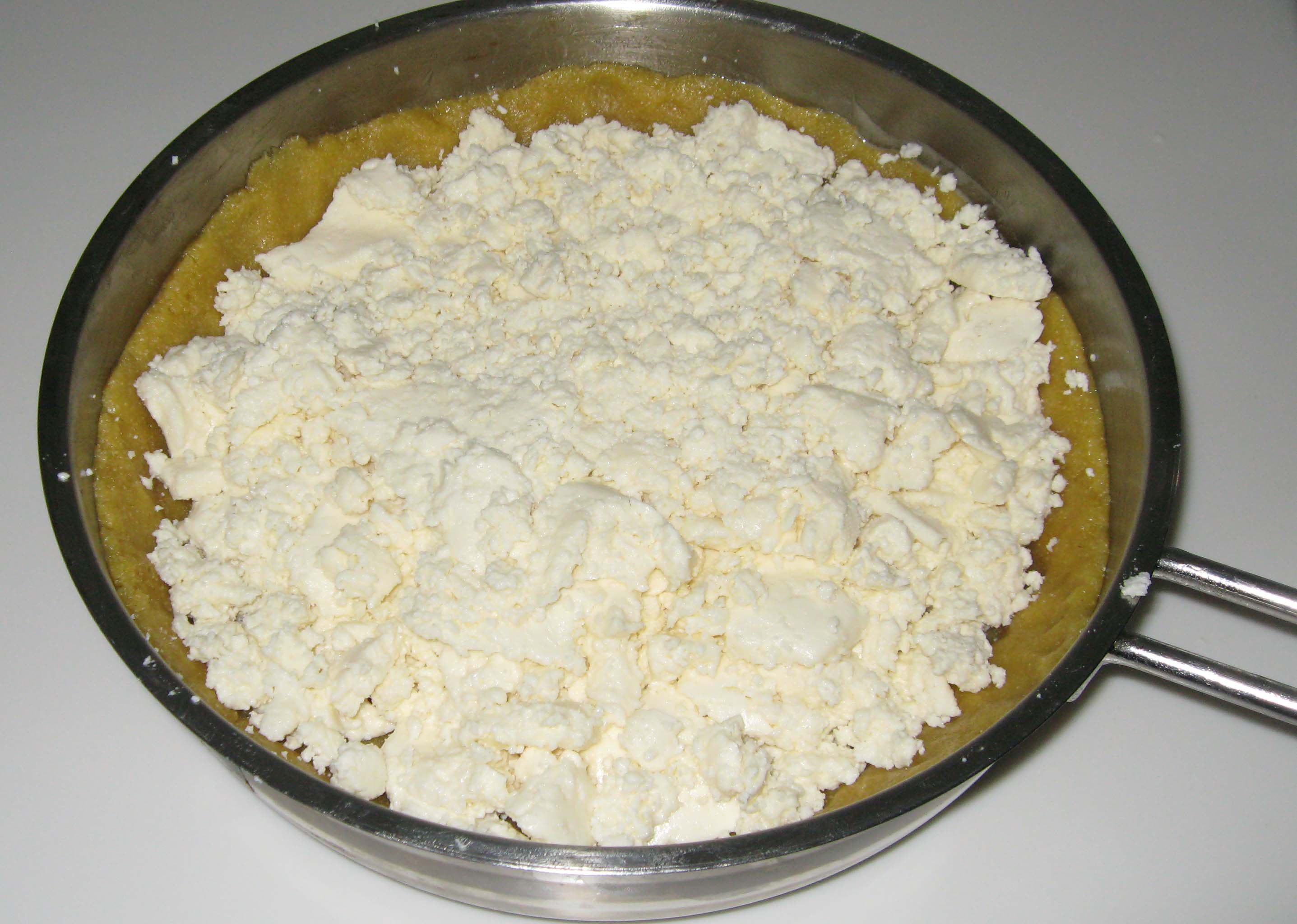 Then, press semolina dough in the pan