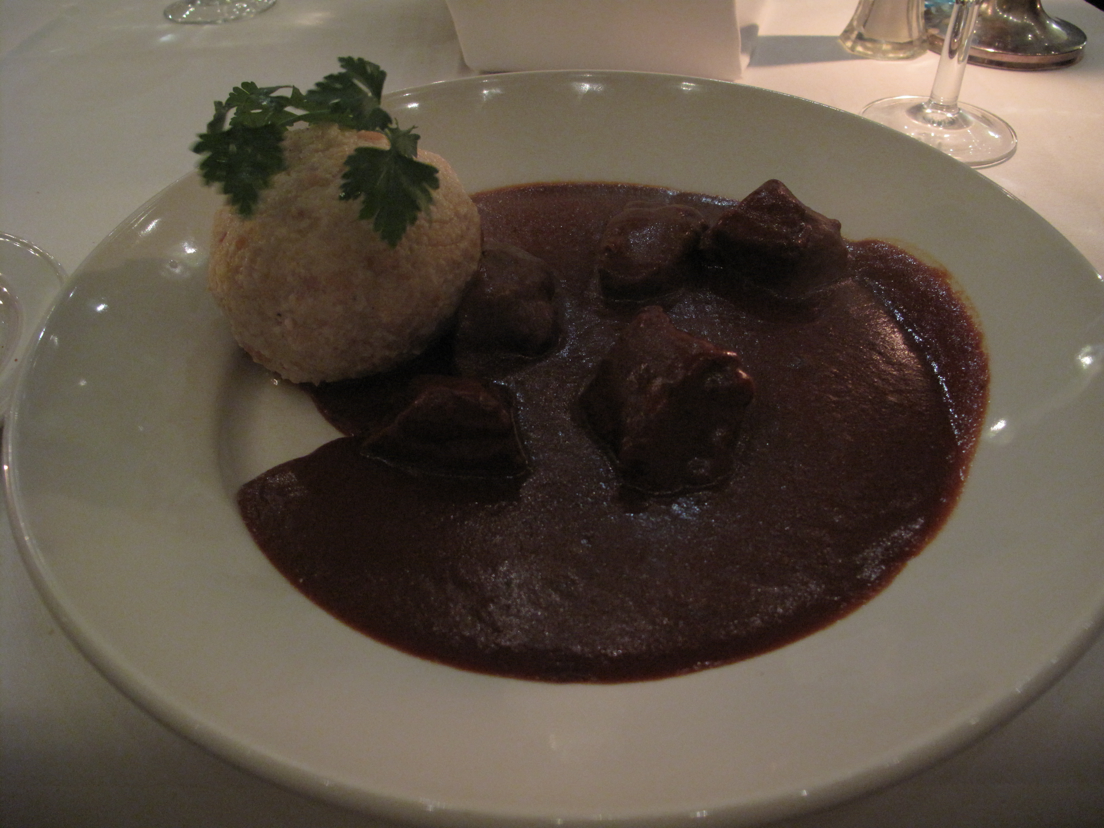Since I was part of an official delegation, we didn’t really get to experience fine dining, except for the one time at the German Foreign Office (Foreign Ministry) where we were invited to the restaurant of the foreign ministry itself! I tried for the first time venison and I quite liked it! And finished off our meal with an excellent creme brulee topped with fresh, plumb berries.