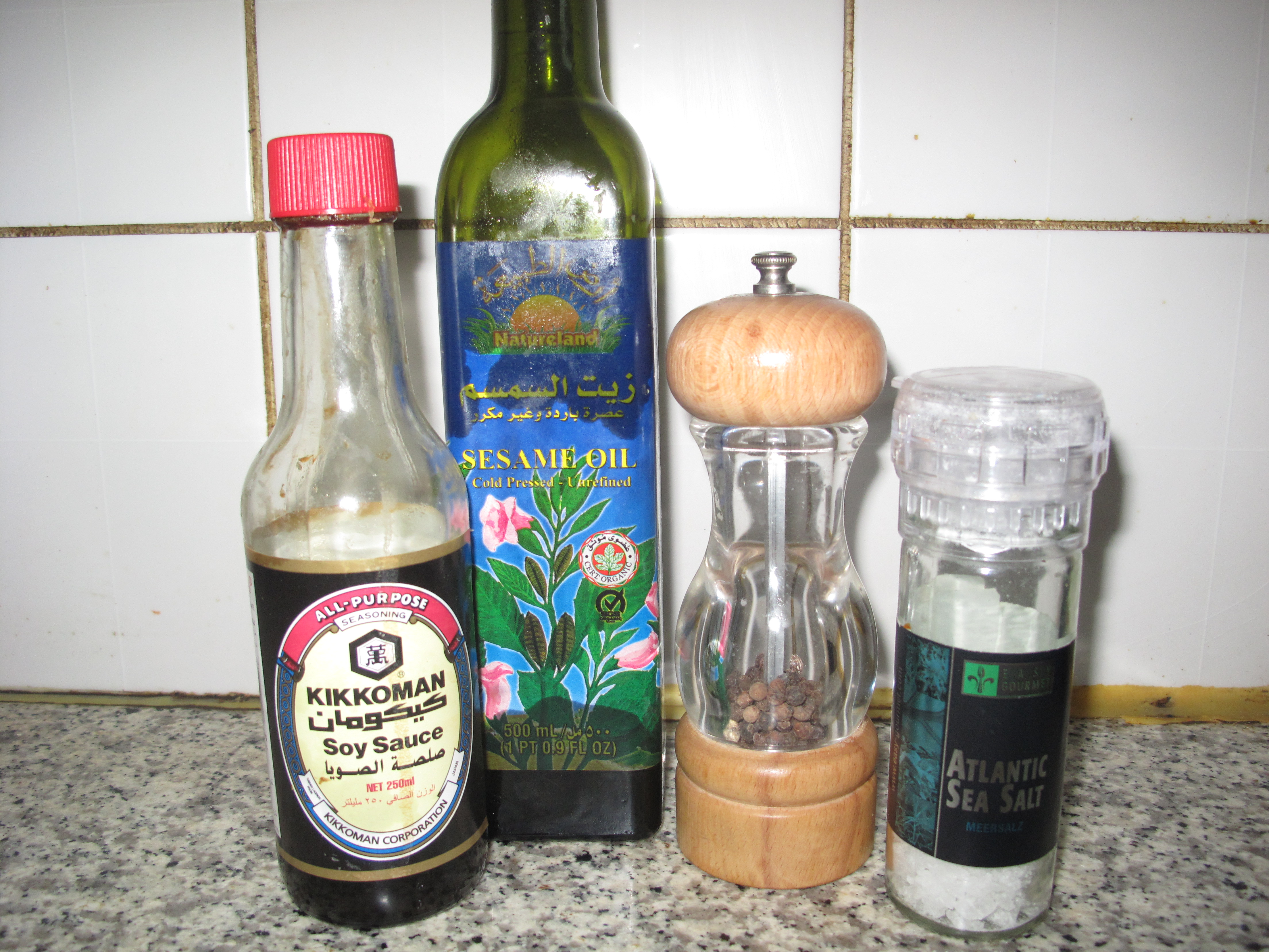 IMG_1351The seasoning: soy sauce, sesame oil, black pepper and sea salt