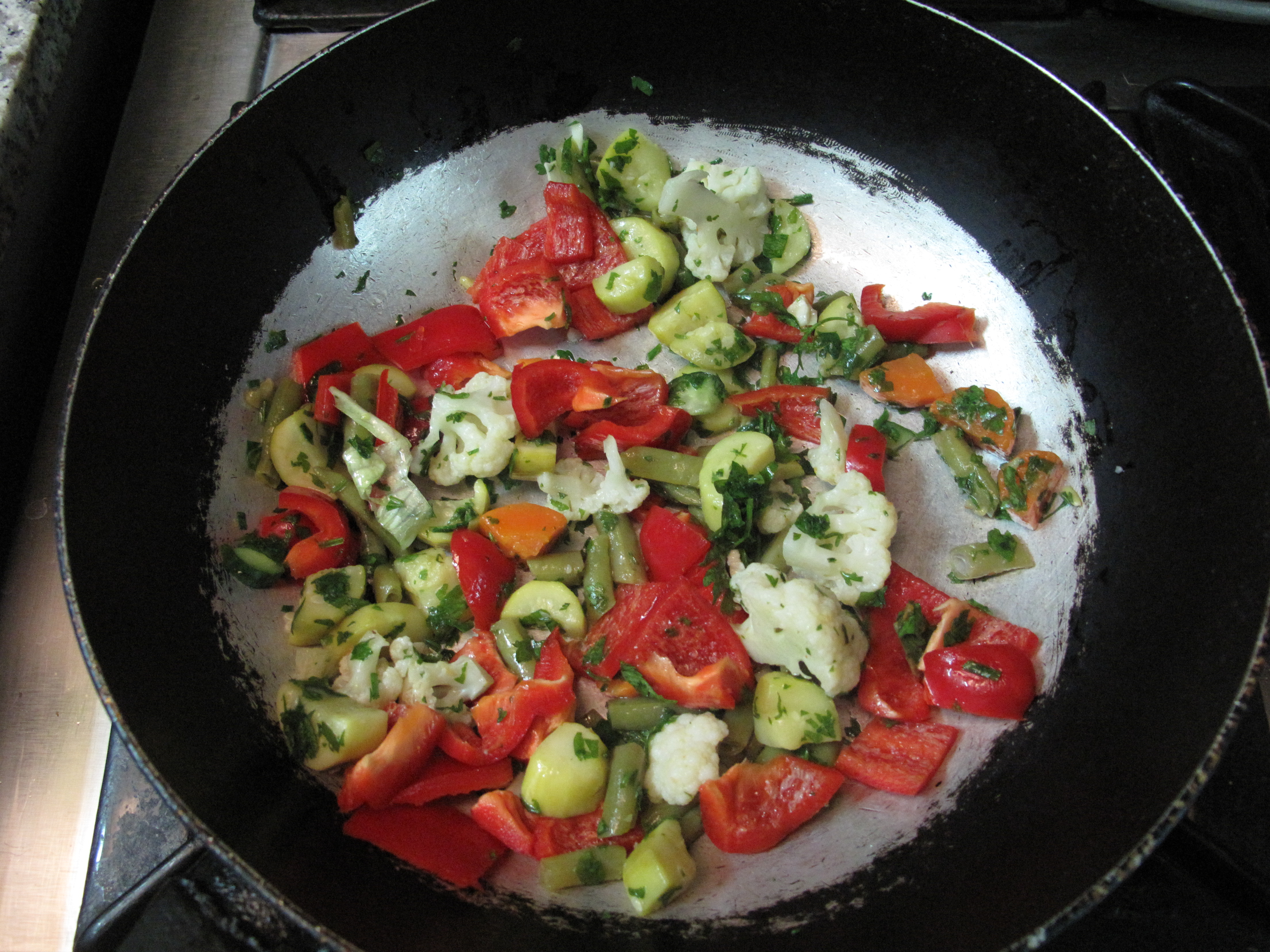 IMG_1356Add the vegetables to the pan and the chopped red pepper.
