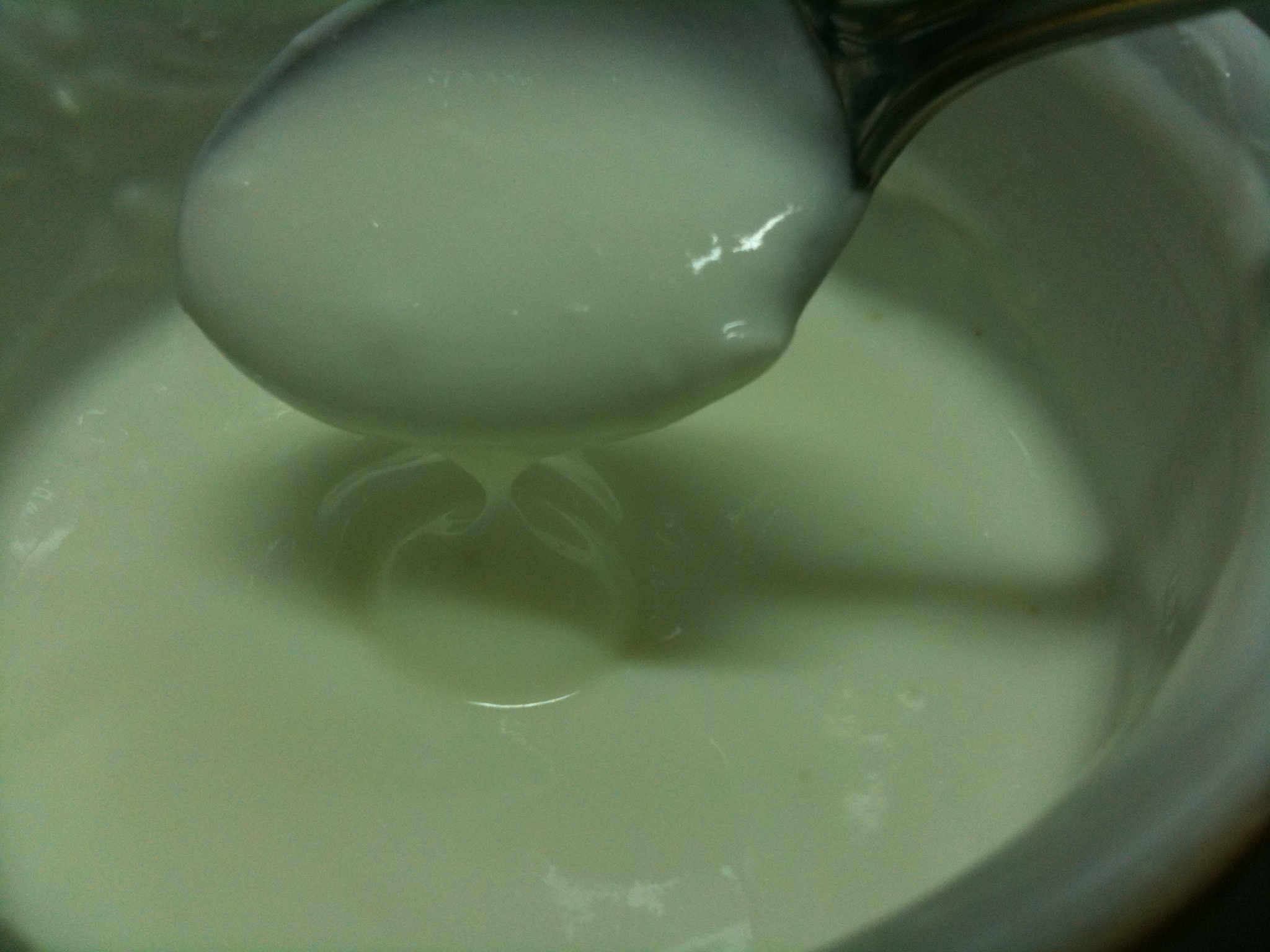 On my second attempt, I adjusted it slightly by adding two tablespoons dry milk powder. It turned out fine but it was still very liquidy! And then I tried to adjust the amount of the milk powder and I even used the yogurt that I made as a starter thinking it would work.