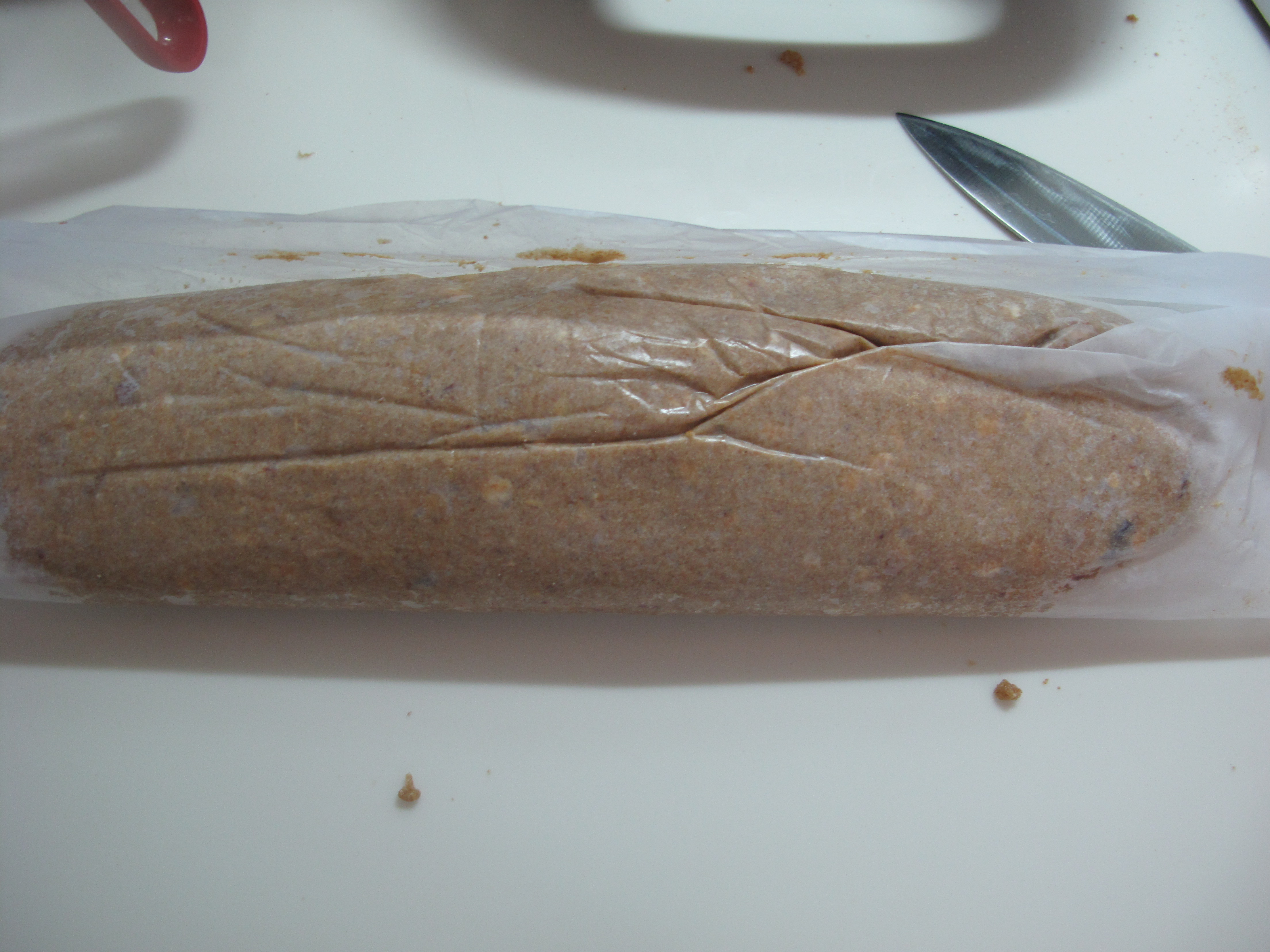 To make it easier for you and to have a consistent size for the cookies, I rolled the dough in a log with the help of a sheet of parchment paper.