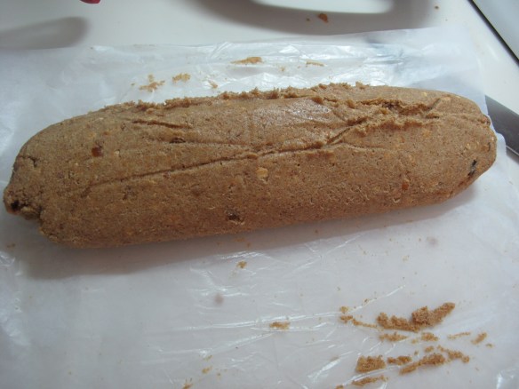 Cut the log into about 20 slices and place them on the two baking sheets.