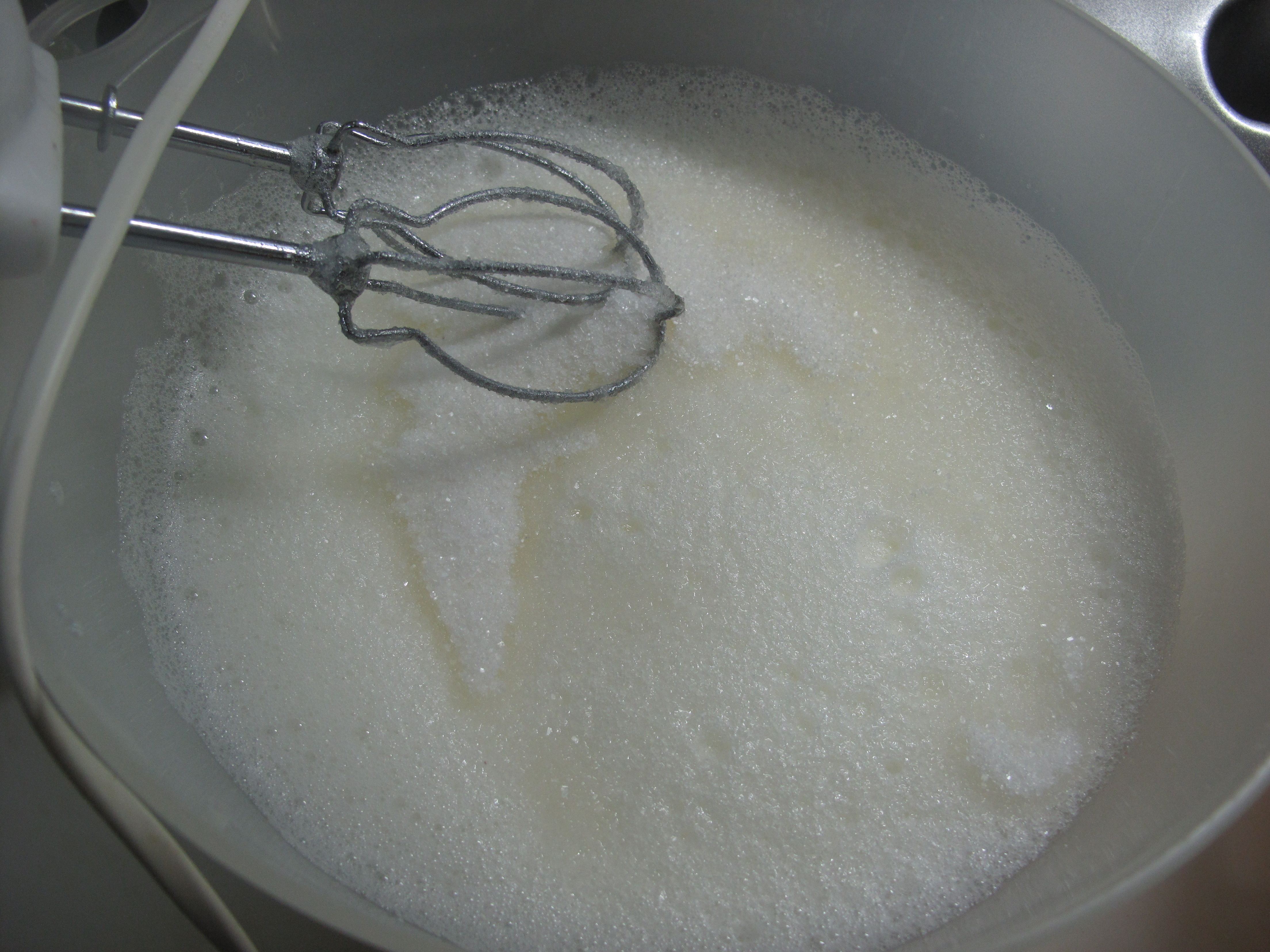 Whisk the egg whites until it forms glossy peaks but be careful not to overwhisk!