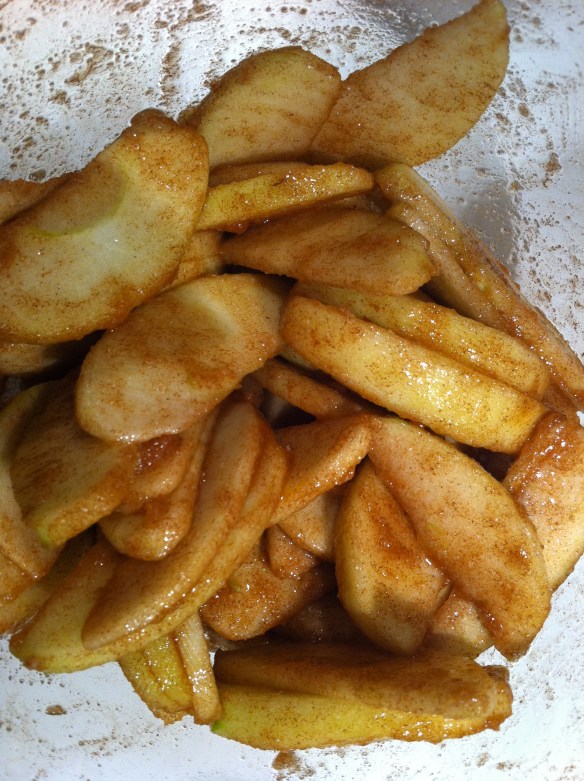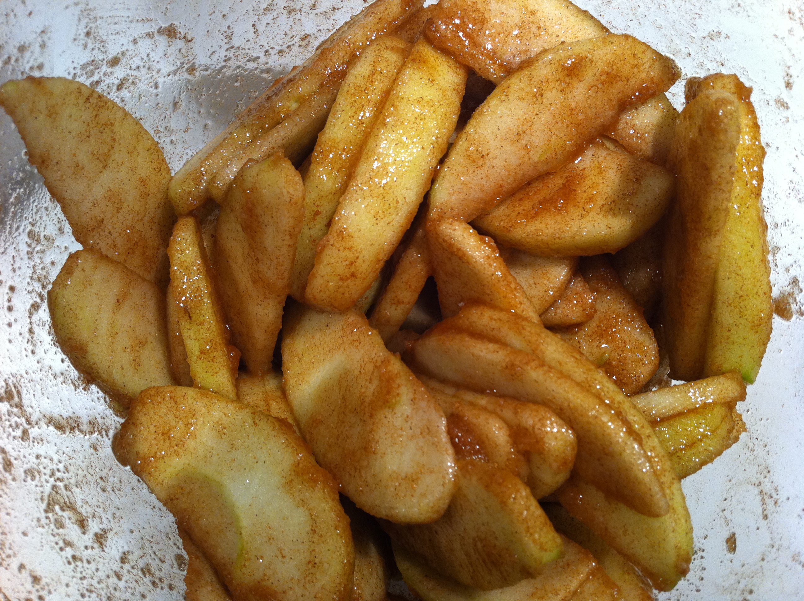 and slice the apples into the bowl. Add the cinnamon-sugar mixture and toss to thoroughly coat each apple slice.