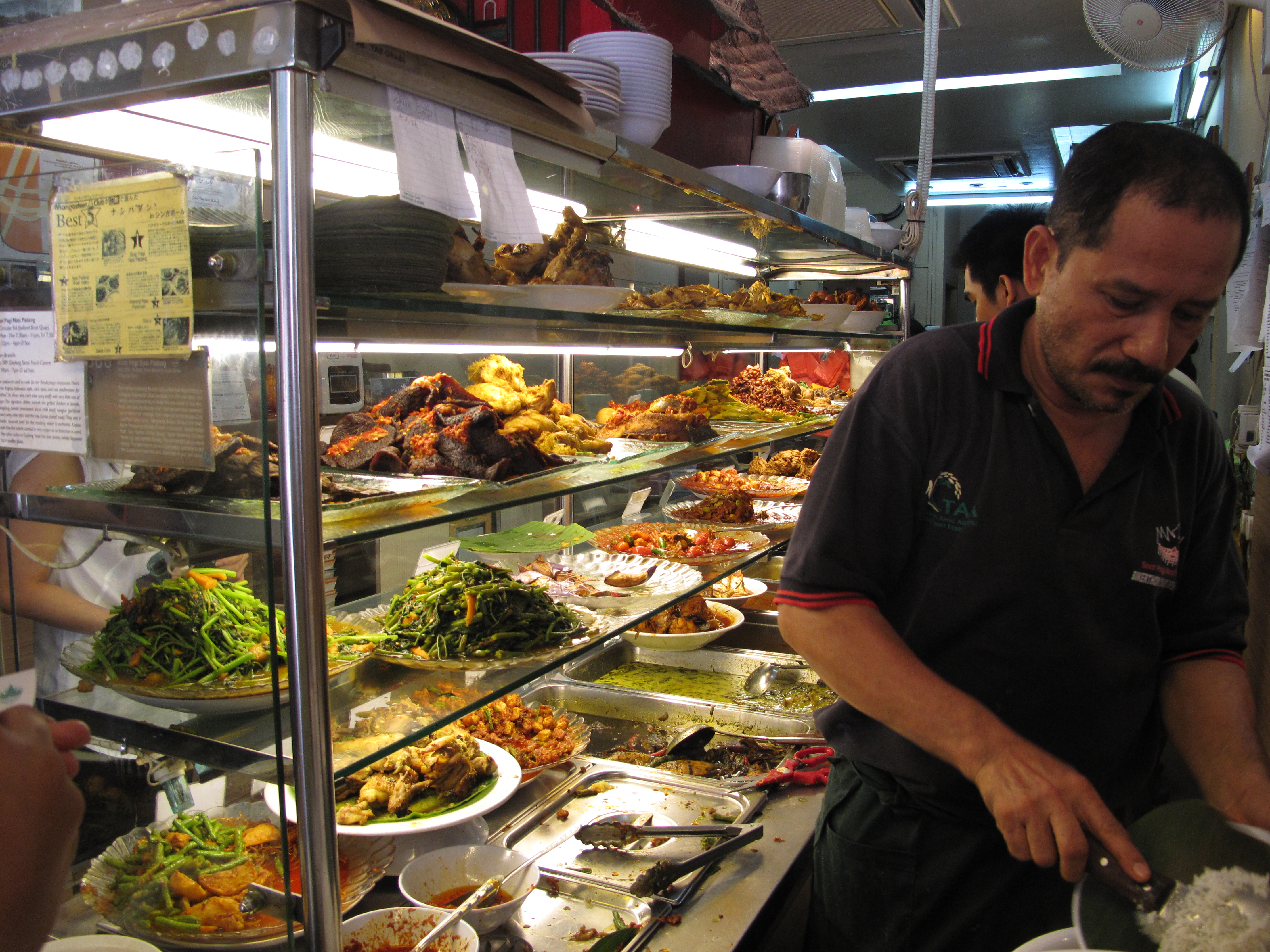 And then we pass by a row of small restaurants that almost look like street vendors. We get to the Malay one.