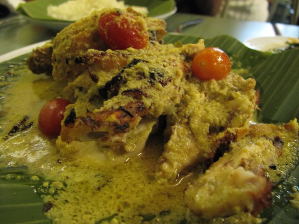 This is the kind of food I wanted to try! I am so glad they took me there. It really was the best food I have had so far here in Singapore and I can’t wait to go back. Everything was delicious! From the perfectly cooked chicken to the can’t have enough vegetable curry to the surprisingly sweet roasted peanut and dried anchovies dish. I highly recommend it. I’ll get the name of the place tomorrow.
